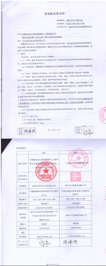 江苏星光发电设备有限公司与中铁建大桥工程局集团第三工程有限公司签订了400KW移动式柴油发电机组采购合同,该发电机组用于重庆轨道交通六号线支线二期2标段项目施工中。发电机组已于2017年12月中旬到达项目现场,等待调试完成后正式投入使..