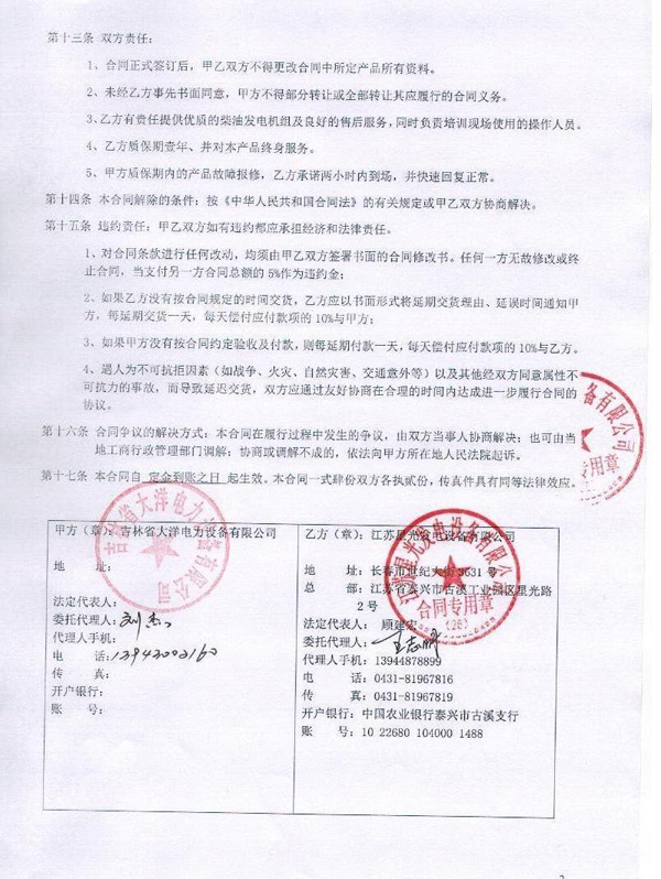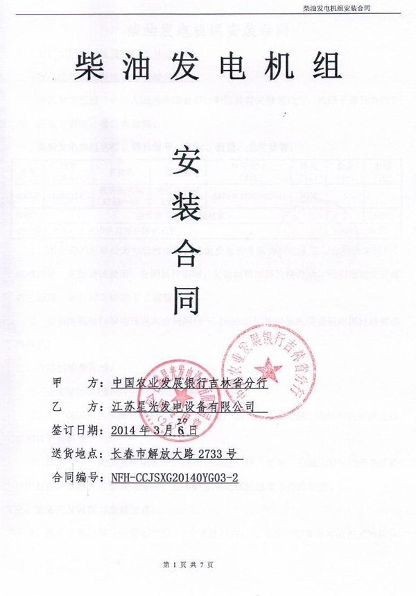 中国农业发展银行吉林省分行柴油发电机组安装合同